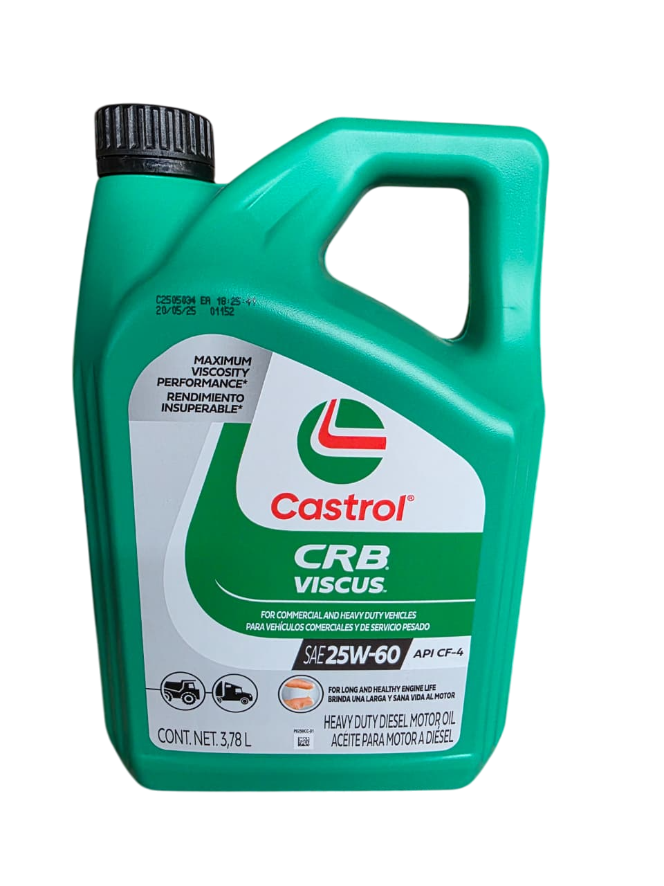Castrol CRB Viscus 25W-60 con exclusivo aditivo Viscus es un lubricante multigrado de alta calidad que proporciona una excelente protección y la mayor* viscosidad del mercado a altas emperaturas del motor, cuando su vehículo más lo necesita, para brindar una larga y sana vida al motor.
